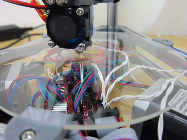 画面右上の「Print」ボタンを押すと、プリントが開始されます。スライサーの設定にもよりますが、最初にキャリブレーションを行い、その後ヒーターの温度が上がります。指定した温度に達するとプリントが始まります。