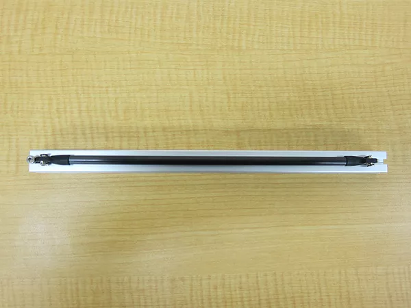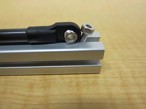 ロッドエンドを取り付けたカーボンロッドをアルミフレームの溝に沿って置きます。ロッドエンドの向きが揃うように調整します。