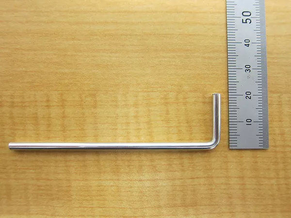 アルミ棒の先端から約75mmのところに印を付け、直角に折り曲げます。