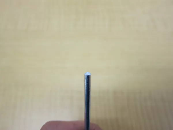アルミ棒を一度Zプローブから外し、アルミ棒L字長辺の先端をヤスリで尖らせます(鋭角にする必要はありません)。終わったら、再度Zプローブの穴に挿入します。