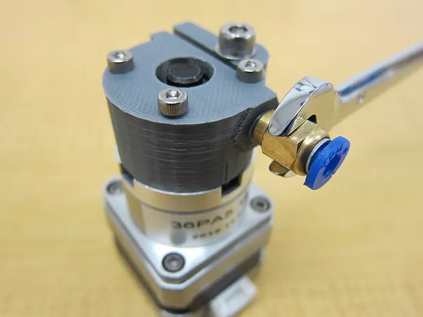 最後に、エクストルーダーハンドルをモーターの軸の上に設置します。モーターを抑えながらハンドルを回し、問題なく回る事を確認します。
