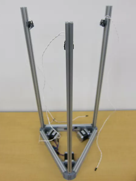 縦フレームの上部からM3ナットを3個を落とし込みます。これはスプールホルダーとエクストルーダーフレームを固定するのに使用します。