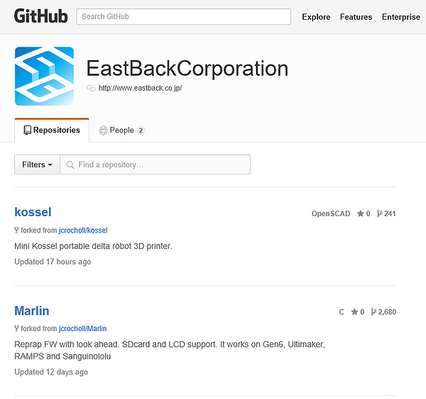 Kossel Mini EBで使用するKisslicer用設定ファイルをダウンロードします。この設定ファイルはGitHubのEastBackCorporationで公開しています。以下のURLを開いて下さい。